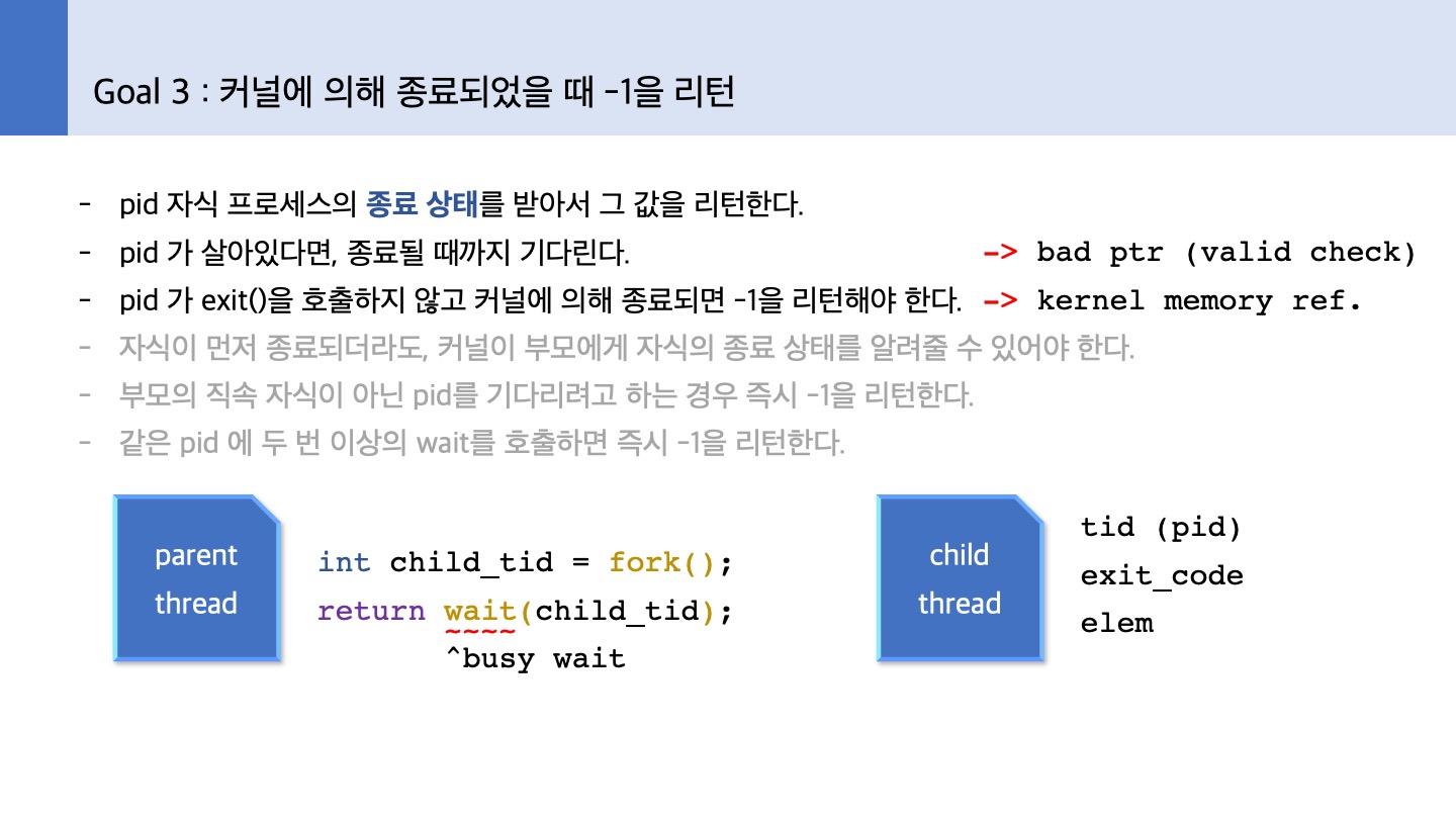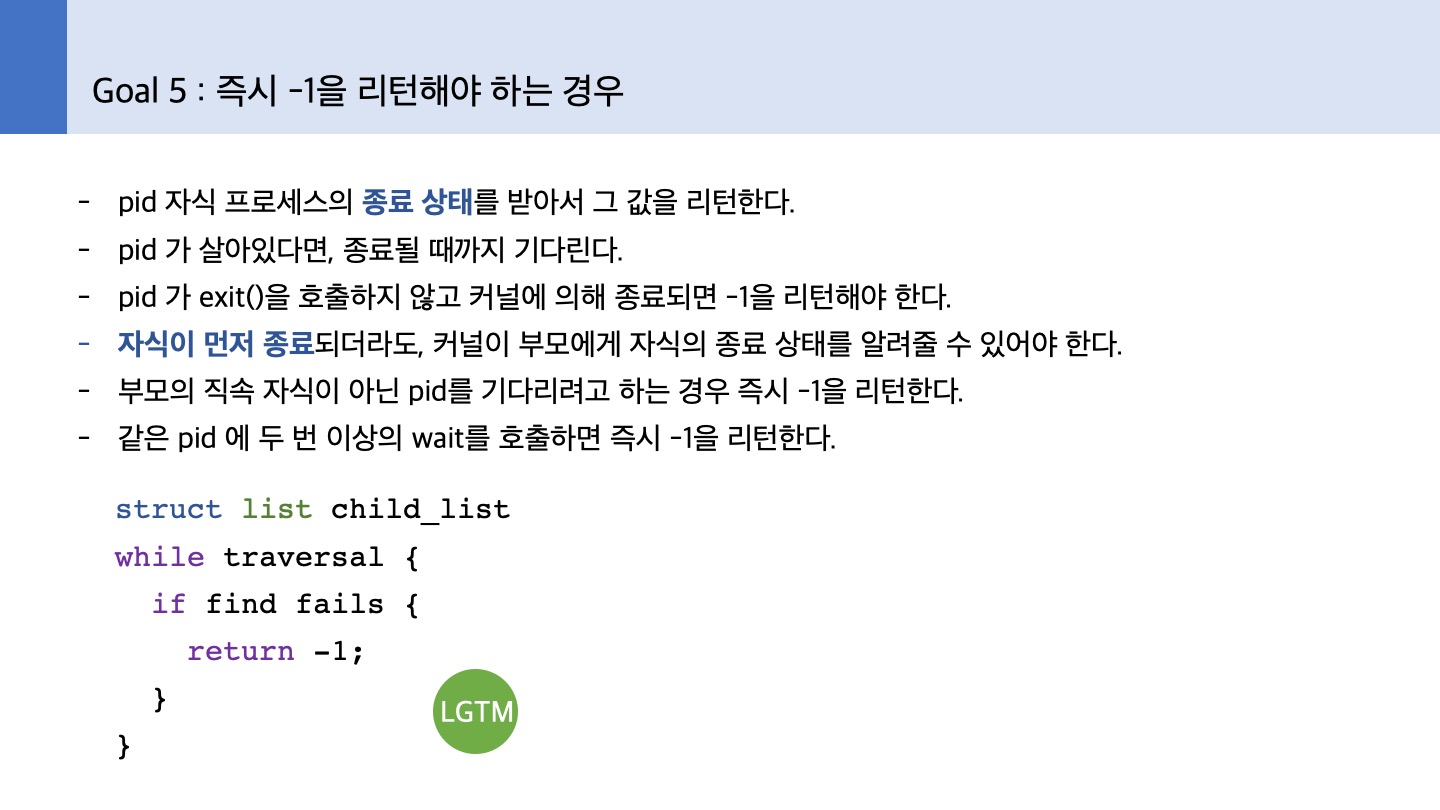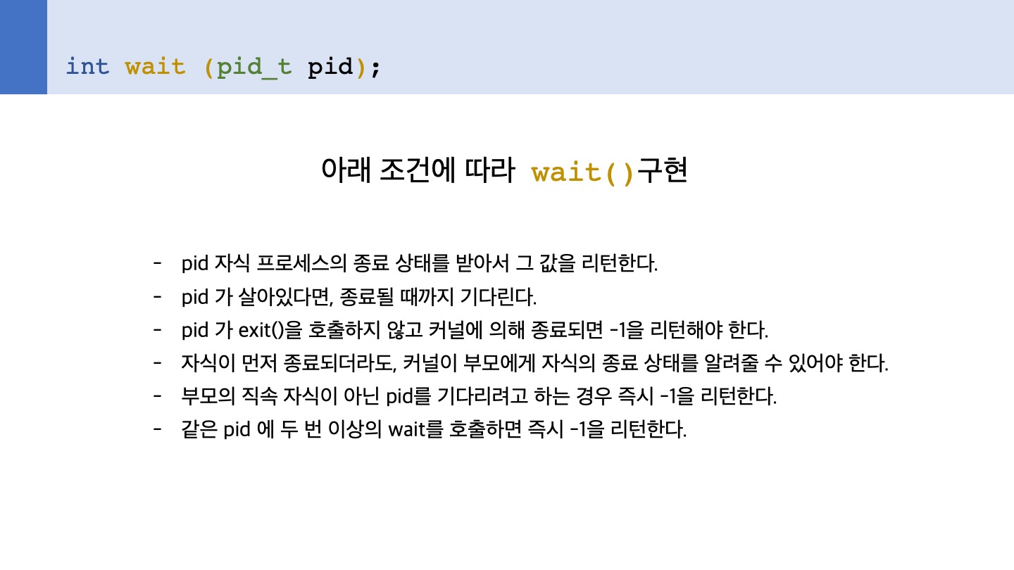 다음 구현 과제로, 즉시 -1을 리턴해야 하는 경우가 있다 (wait요청 자체가 잘못되었을 경우).