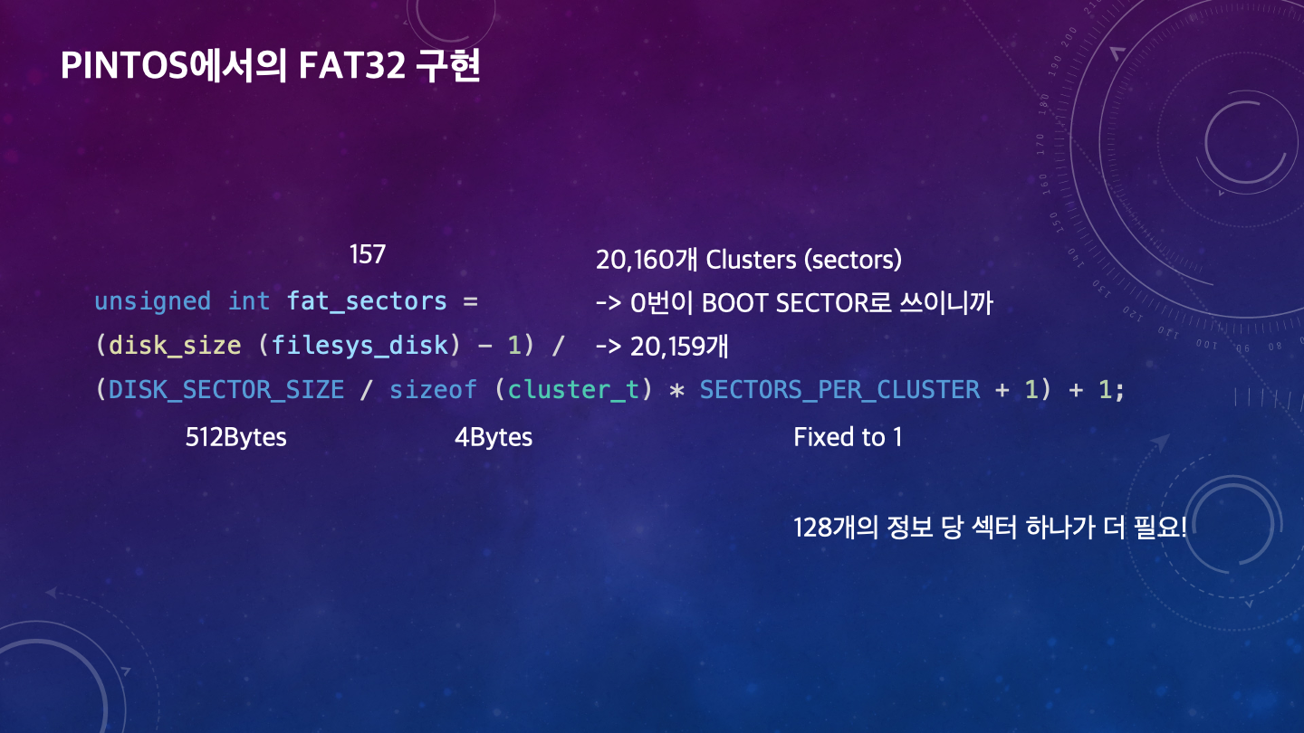 PINTOS에서는 FAT32 방식으로 구현하면 된다.